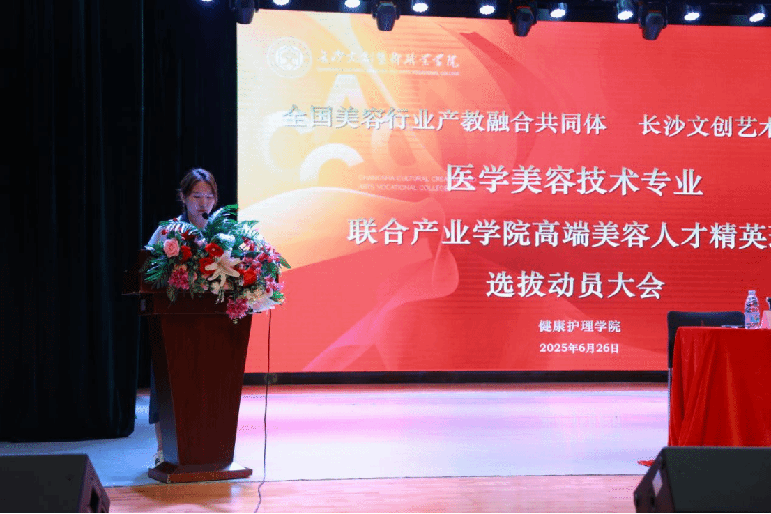 为深入贯彻国家职业教育改革精神,推动产教融合落地见效,6月26日,长沙文创艺术职业学院隆重举行医学美容技术专业与全国美容行业产教融合共同体校企合作签约仪式暨“高端美容人才联合培养基地”揭牌仪式,并同步召开精英班人才选拔动员大会,标志着我校在专业建设与协同育人方面迈出坚实步伐,开启校企合作共建人才培养新格局。